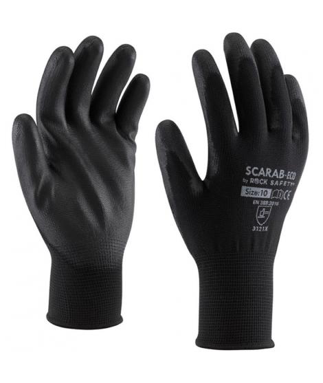 Mănuși de asamblare, model SCARAB-ECO, din poliester cu palma imersată în PU, oferă o protecţie optima pentru operațiuni de manipulare, asamblare si o dexteritate excelentă.